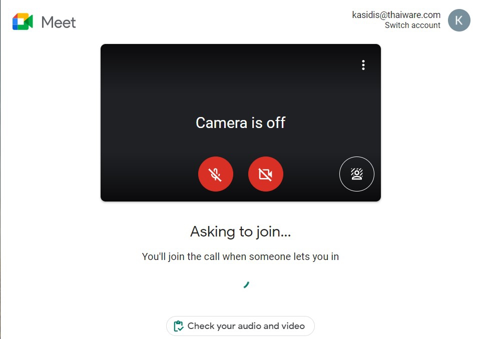 ทั้งนี้ ถ้าเราใช้บัญชี Google Account แบบส่วนบุคคล การเข้าประชุม Google Meet ด้วยลิงก์คนอื่น แบบนี้ ปกติจะต้องได้รับการอนุมัติจาก Host ก่อน จะยังไม่สามารถเข้าได้เลย เว้นแต่ว่าบัญชีเหล่านั้นจะเป็นแบบองค์กร และมีการผูกบัญชีพนักงานเอาไว้ด้วยกัน คน Join สามารถเข้าห้องได้เลยไม่ต้องรออนุมัติ ขณะที่คนนอกจะต้องรอการอนุมัติก่อนนั่นเอง