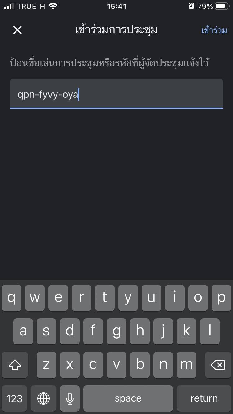 เช่น ลิงก์คือ https://meet.google.com/qpn-fyvy-oya ก็ให้นำรหัส qpn-fyvy-oya หรือ qpnfyvyoya มาใส่เข้าห้องตามภาพครับ