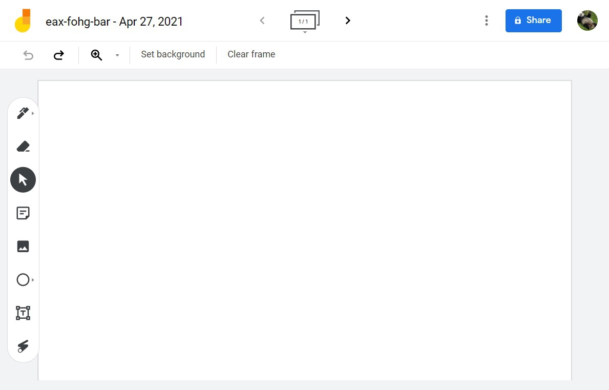 เป็นเครื่องมือที่สำหรับช่วยระดมความคิดตามชื่อเลยก็คือกระดานไวท์บอร์ด (Whiteboard) แบบสดๆ เรียลไทม์ (Real-Time) เพราะปกติเวลาประชุมแผนงานก็ต้องมีการขีดเขียนร่างแผนอะไรกันบ้าง ฟีเจอร์นี้เลยออกแบบมาให้เราสามารถสร้าง Whiteboard เพื่อใช้งานพร้อมกันได้ในตัว Google meet