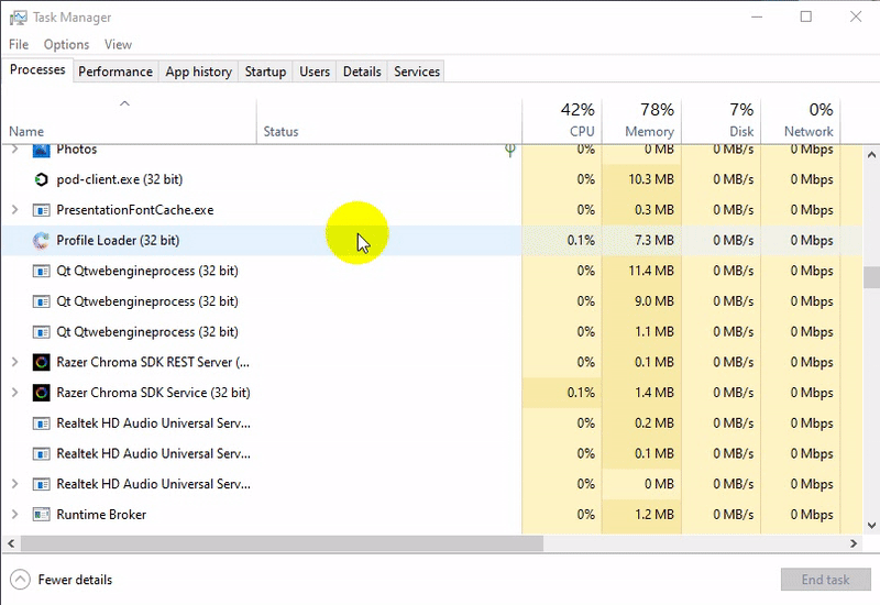 วิธีแก้ไข คือ ให้เราคลิกขวาที่ "ปุ่ม Start" แล้วเลือก "เมนู Task Manager" ไปที่ "แท็บ Processes" ตรวจสอบรายชื่อซอฟต์แวร์ที่ทำงานอยู่ในโปรเซสที่อยู่เบื้องหลัง (Background Process) ว่าตัวไหนไม่ใช้ ให้เราคลิกขวา แล้วเลือก "เมนู End Task" ไปครับ