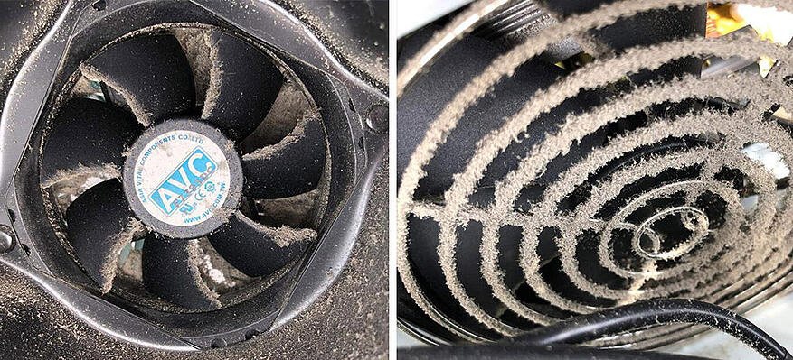 โดยเฉพาะกับคอมเก่า ๆ ที่ผู้ใช้ไม่ค่อยได้ดูแลรักษาและปล่อยให้ฝุ่นจับจนพัดลมระบายอากาศทำงานได้ไม่ดีจนทำให้เกิดปัญหาเครื่องร้อนขึ้นมาจน CPU ทำงานรวนได้ ดังนั้นจึงควรทำความสะอาดพัดลมระบายอากาศอยู่เสมอ ๆ เพื่อป้องกันปัญหาดังกล่าวและช่วยไม่ให้คอมพิวเตอร์ร้อนจัดจนเกินไปด้วย