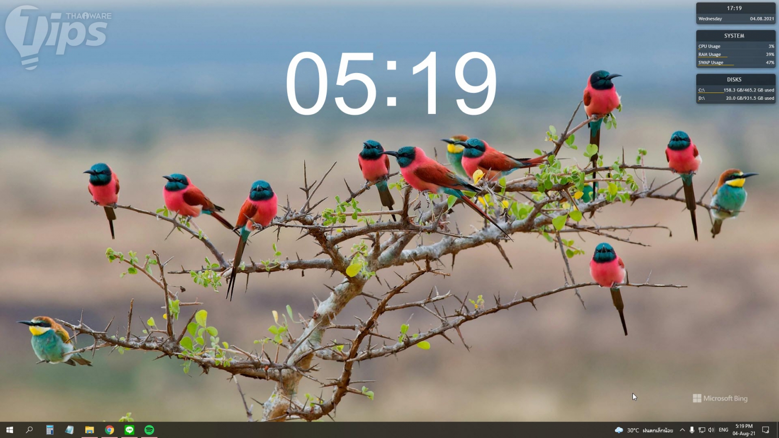 1. ที่ทาส์กบาร์ด้านล่างหน้าจอ (Taskbar) ให้กด "ปุ่ม ^" เพื่อเรียกดูโปรแกรมทั้งหมดที่อยู่บน System Tray แล้วคลิกซ้ายที่ "ไอคอน Bing" ที่เป็นรูปตัว B สีฟ้า