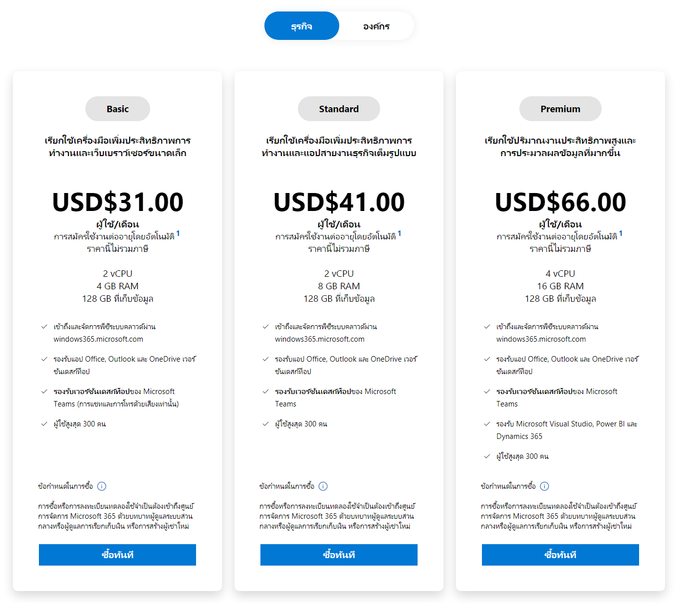 ตัวอย่างการปรับแต่ง Windows 365 ทั้งตัวประมวลผล RAM และ Storage