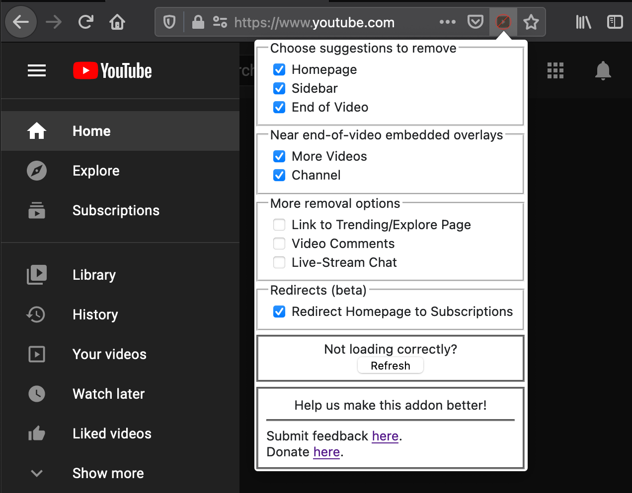 ส่วนเสริมนี้เป็นส่วนเสริมแบบ Open-source ที่ทางผู้ใช้งานสามารถนำไปปรับแต่งโค้ดต่อได้เอง โดยความสามารถของส่วนเสริมนี้คือ สามารถซ่อนหน้าหลักของ YouTube ได้, ซ่อนคลิปแนะนำหลังคลิปจบได้, และซ่อนแถบแนะนำคลิปด้านข้างได้