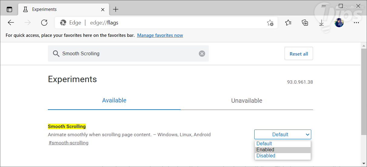 Smooth Scrolling เป็นคุณสมบัติเล็ก ๆ ที่มาพร้อมกับความสามารถที่เล็กน้อยเช่นกัน อันที่จริง เราไม่รู้ด้วยซ้ำว่าจริง ๆ เราต้องการใช้งานเจ้าคุณสมบัตินี้หรือเปล่า โดยเมื่อเปิดใช้งาน Flag นี้เอาไว้ เวลาคุณเลื่อนหน้าจอ ไม่ว่าจะด้วยเมาส์วีล, ปุ่มทิศทาง หรือแทรกแพด แอนิเมชันการเลื่อนหน้าจอจะมีความลื่นไหลสมูทมากขึ้น