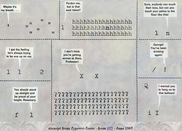 เราพยายามหารูป Mad Maggazine ปี ค.ศ. 1962 (พ.ศ. 2505) แล้วไม่เจอ ใกล้เคียงสุดคือในปี ค.ศ. 1965 (พ.ศ. 2508) ที่มีการพูดถึง Typewri-toons แต่เนื้อความก็มีความคล้ายคลึงกัน