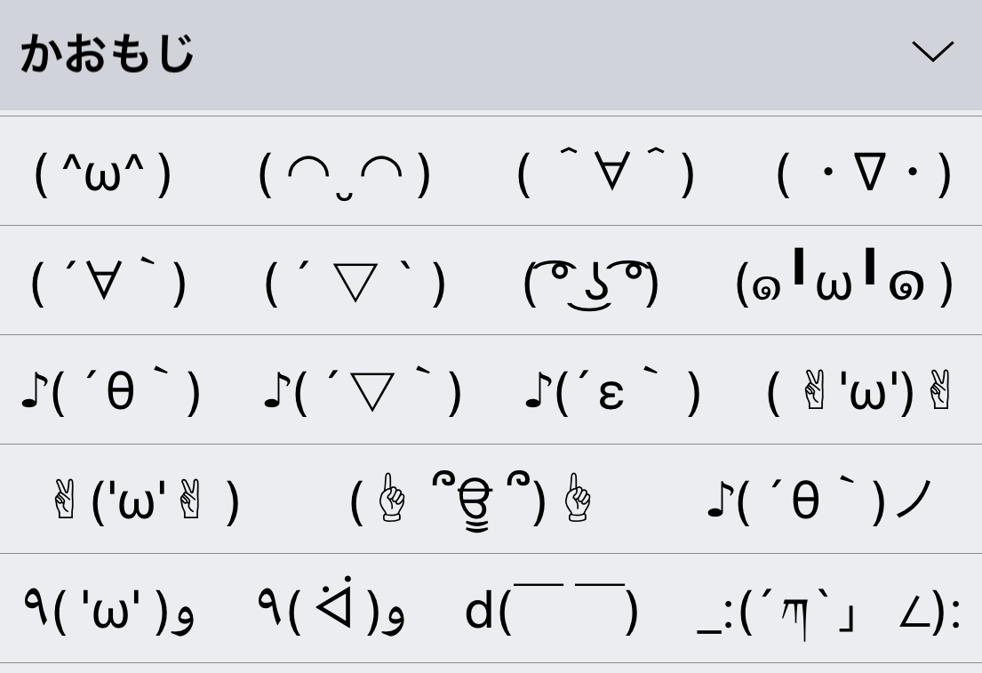 ถัดมาหลังจากที่การใช้งาน Emoticon เริ่มแพร่หลาย อีกสิ่งที่ได้รับความนิยมไม่แพ้กันก็ได้แก่ Kaomoji ที่มีลักษณะคล้าย Emoticon คือ เป็นการนำเอาตัวอักษรและสัญลักษณ์ต่าง ๆ มาผสมเข้าด้วยกันเพื่อสื่อความหมายต่าง ๆ ออกมา แต่ Kaomoji นั้นจะนำเอาตัวอักษรของประเทศอื่น ๆ เข้ามาใช้งานร่วมด้วย (ในขณะที่ Emoticon ใช้เฉพาะตัวอักษรภาษาอังกฤษและสัญลักษณ์บนคีย์บอร์ดที่เราคุ้นเคยกันดีเท่านั้น)