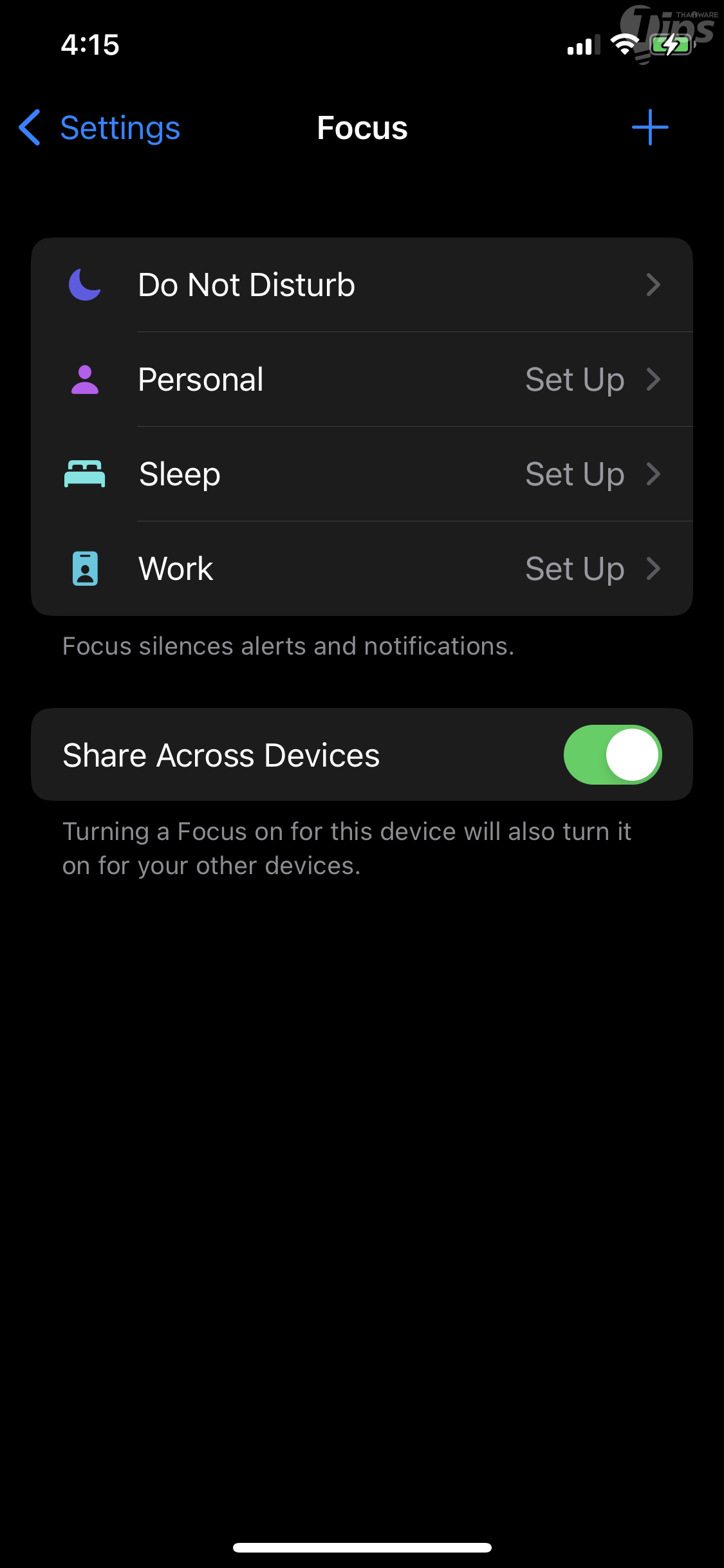Focus เป็นคุณสมบัติใหม่ที่ถูกเพิ่มเข้ามาใน iOS 15 โดยมีเป้าหมายที่ต้องการช่วยให้ผู้ใช้งานมีสมาธิจดจ่อกับงานทีกำลังทำอยู่ได้มากขึ้น โดย "โหมด Focus" ใน iOS 15 เป็นสิ่งที่ถูกพัฒนาต่อจาก "โหมด Do Not Distub" ที่มีอยู่เดิม ให้ผู้ใช้สามารถกำหนดรายละเอียดการทำงานของมันได้อย่างละเอียดยิ่งขึ้น