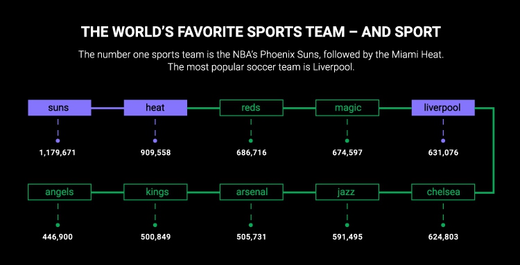 ทีมกีฬาที่ติดอันดับต้น ๆ คือทีมบาสเก็ตบอล Phoenix Suns (suns) และ ทีม Miami Heat (heat) ที่อยู่อันดับ 1 และ 2 หัวตาราง