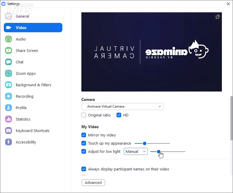 หากคุณใช้งานในสถานที่ที่มีแสงน้อย ย่อมส่งผลต่อคุณภาพของวิดีโอด้วยอย่างแน่นอน ซึ่งทางผู้พัฒนา โปรแกรม Zoom Meeting ก็ดูเหมือนจะเล็งเห็นปัญหาเรื่องของสภาพแสงที่แตกต่างกันในการใช้งานด้วย จึงมีออปชันให้เราสามารถปรับแต่งวิดีโอเพื่อให้แสดงผลได้ดีขึ้นมาให้เราใช้งานกัน