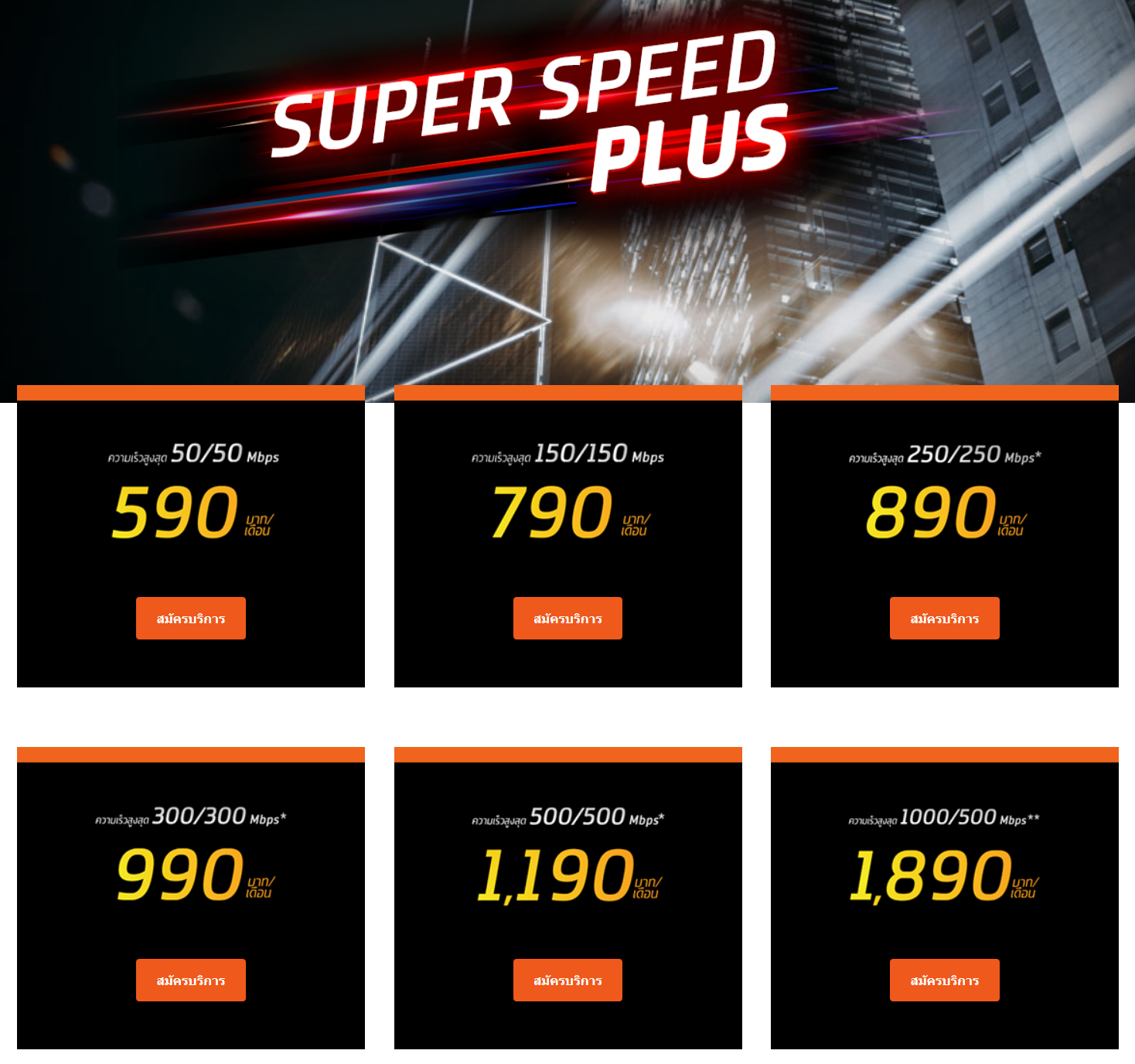 ซึ่งแพ็กเกจอินเทอร์เน็ตความเร็วต่ำกว่า 100 Mbps เป็นแพ็กเกจ Super Speed Plus จาก NT Broadband หรือ C Internet by Cat มีความเร็วดาวน์โหลด/อัปโหลด 50/50 Mbps ในราคา 590 บาท เหมาะสำหรับผู้ที่ใช้งานเล็ก ๆ น้อย ๆ ไม่ยุ่งเกี่ยวกับการดูวิดีโอ เล่นเกมมากนัก