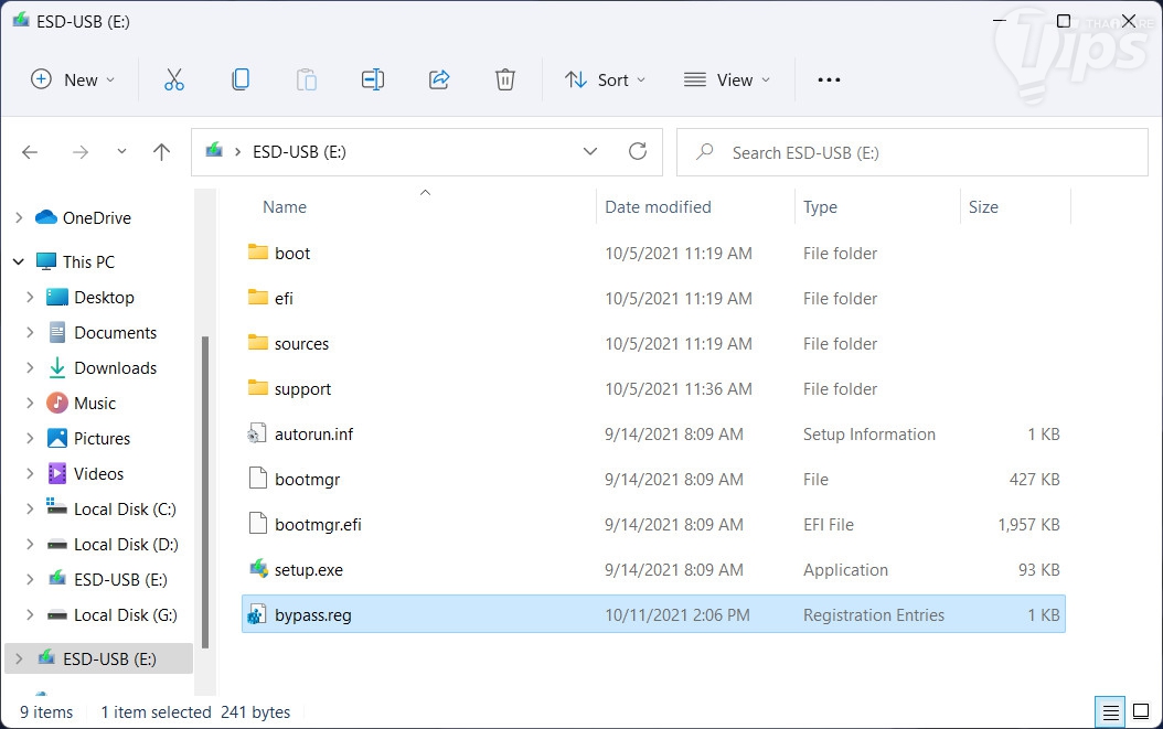 นำไฟล์ bypass.reg ไปใส่ไว้ใน USB ที่เราทำเป็น Installation Media แล้ว