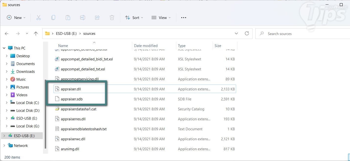 เปิด "โฟลเดอร์ Sources" ที่อยู่ในตัว USB ไดร์ฟที่เราทำเป็น Installation Media แล้ว ลบไฟล์ "appraiser.dll" และ "appraiser.sdb" เริ่มติดตั้งระบบปฏิบัติการ Windows 11 ได้ทันที