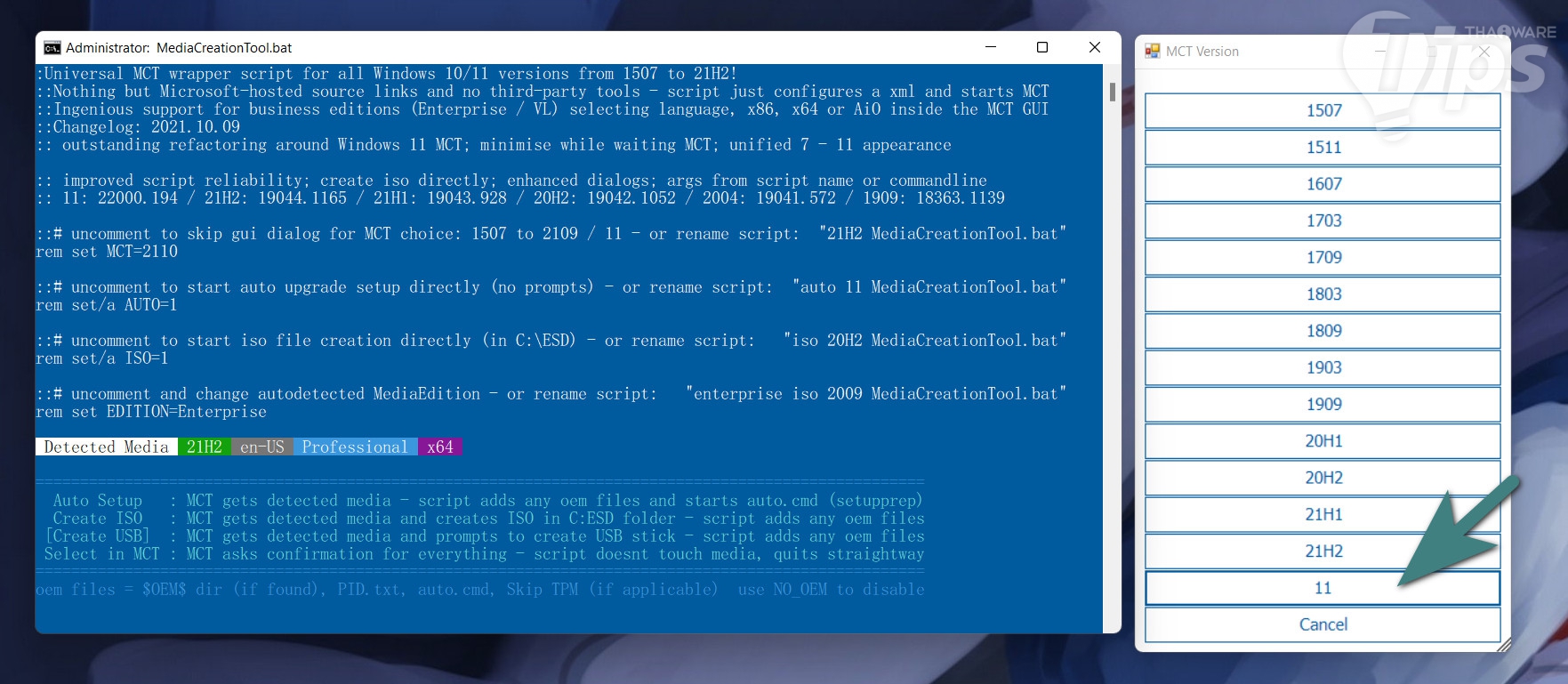 ทำการแตกไฟล์ที่ดาวน์โหลดมาให้เรียบร้อย จะมีไฟล์ที่ชื่อว่า "MediaCreationTool.bat" อยู่ คลิกขวาที่ไฟล์ "MediaCreationTool.bat" เลือก "เมนู Run as administrator" เลือก "11"