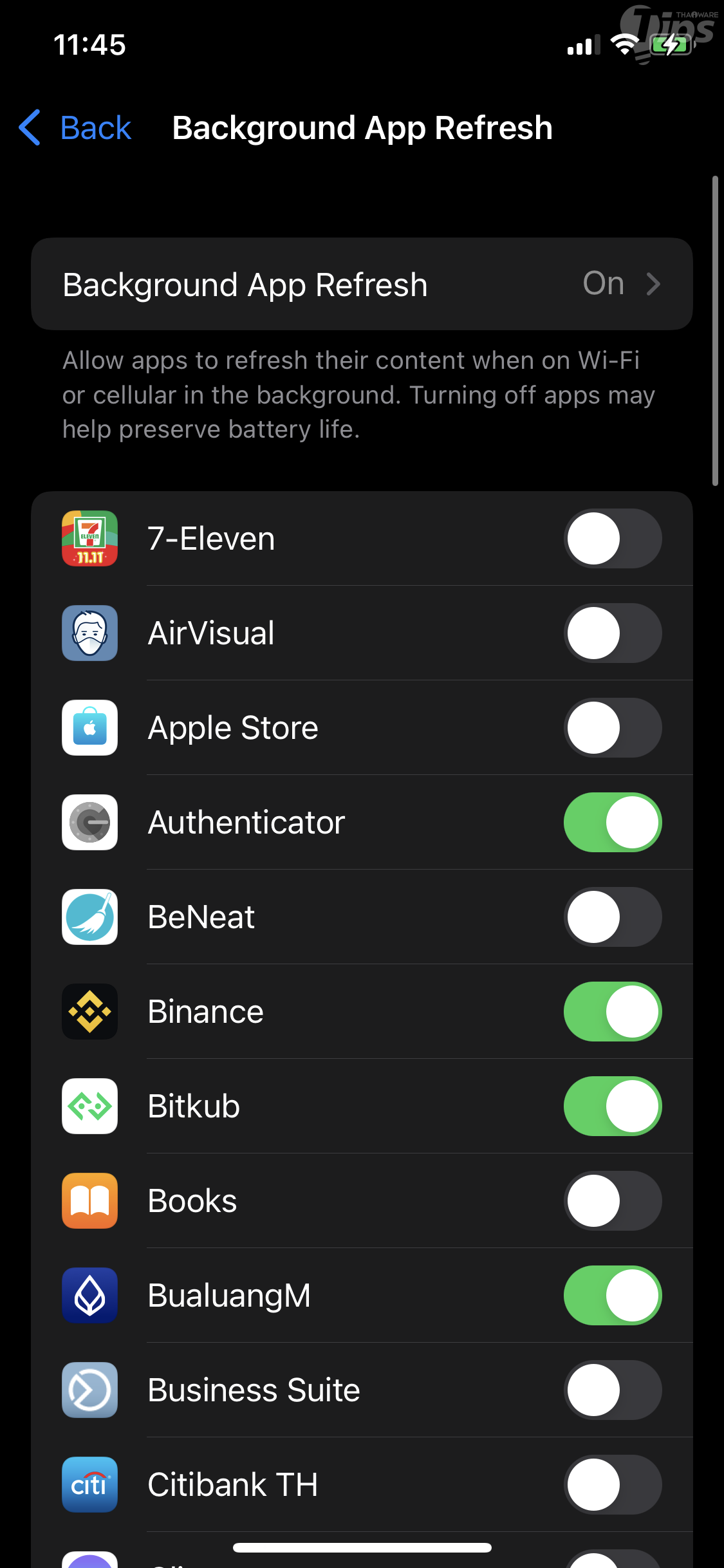 โดยปกติแล้ว เมื่อเราติดตั้งแอปพลิเคชันลงบนสมาร์ทโฟน ไม่ว่าจะระบบปฏิบัติการ iOS หรือระบบปฏิบัติการ Android คุณสมบัติแอปพื้นหลัง (Background Apps) จะถูกเปิดใช้งานเอาไว้อัตโนมัติ แนะนำว่าแอปพลิเคชันไหนที่ไม่ค่อยได้ใช้ ก็เข้าไปตั้งค่ายกเลิกคุณสมบัติแอปพื้นหลังเพื่อประหยัดพลังงานแบตเตอรี่ได้