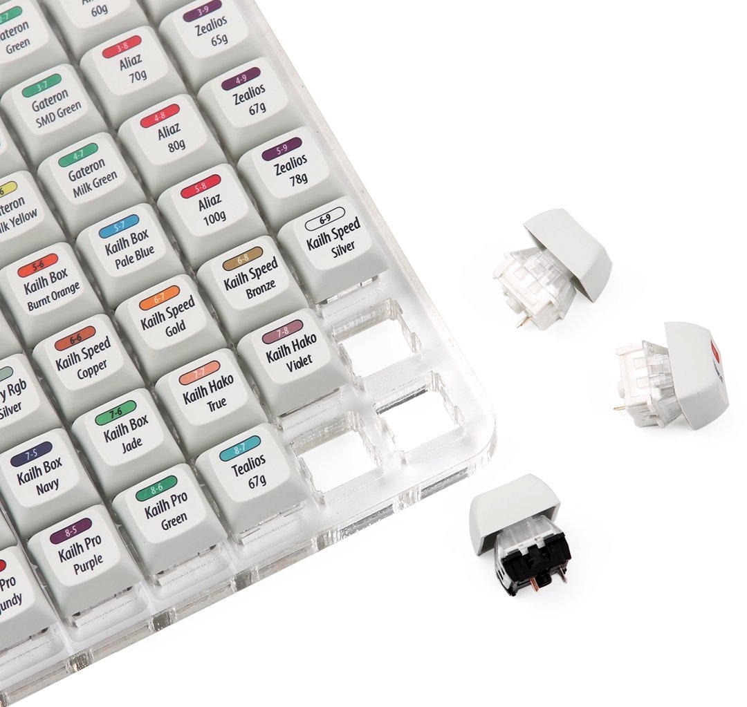 ชุดสวิตช์ที่ประกอบไปด้วยสวิตช์หลายประเภทรวมไว้ภายในชุดเดียว เพื่อใช้ในการทดสอบความรู้สึกในการสัมผัสที่แตกต่างกันของสวิตช์แต่ละแบบได้อย่างสะดวก ทั้งนี้ Key Tester ไม่ถือว่าเป็นคีย์บอร์ด นอกจากสวิตช์แล้ว ภายในก็ไม่มีแผง PCB ให้เชื่อมต่อกับคอมพิวเตอร์แต่อย่างใด