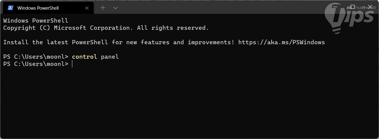 ถ้าถนัดการใช้คำสั่ง Command ก็สามารถเปิด Control Panel ผ่าน Windows Terminal ได้เช่นกัน ซึ่งก็ถือว่าเป็นวิธีที่ค่อนข้างง่าย
