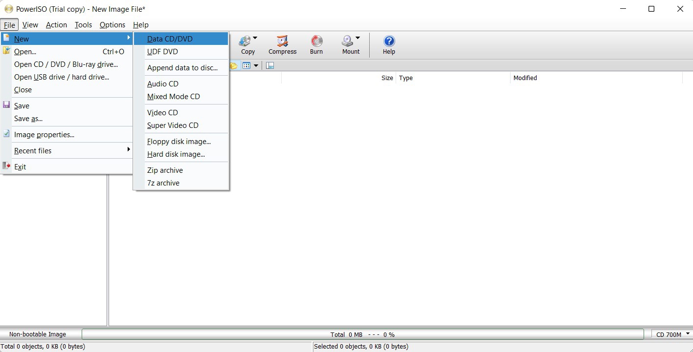 และหลังจากติดตั้งแล้วเปิดโปรแกรม PowerISO ขึ้นมาจากนั้นทำตามขั้นตอนดังนี้