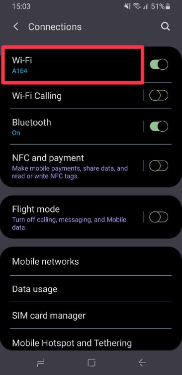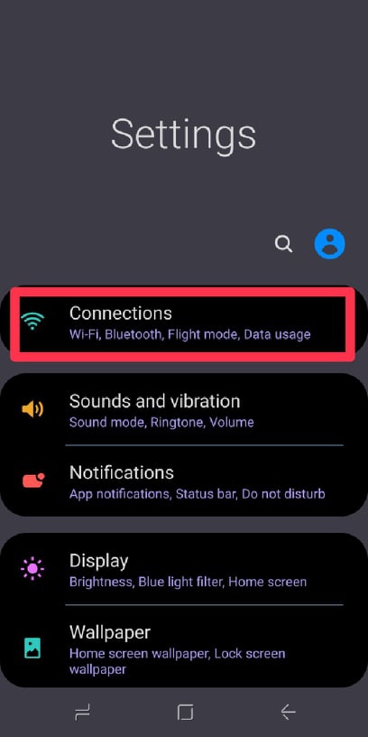 1. ไปที่ "เมนู Setting" แล้วแตะที่ "เมนู Connections”
