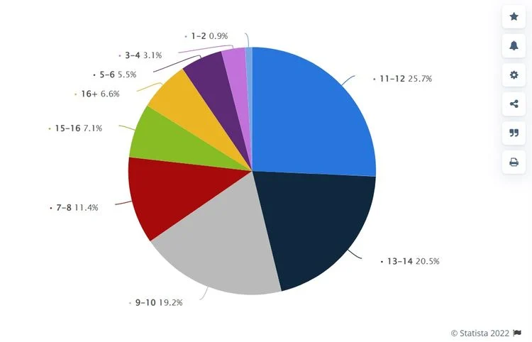 จากการสำรวจสถิติการใช้งานมือถือของ Commin Sense Media องค์กรไม่แสวงหาผลกำไรของสหรัฐอเมริกา พบว่า ในปี ค.ศ. 2019 (พ.ศ. 2562) เด็กอายุ 12 ปี มีมือถือเป็นของตัวเอง 69% เพิ่มขึ้นจาก 41% ในปี ค.ศ. 2015 (พ.ศ. 2558) ในขณะที่เด็กอายุ 10 ปี มีมือถือเป็นของตัวเอง 36% เพิ่มขึ้นจาก 19% ในปี ค.ศ. 2015 (พ.ศ. 2558)