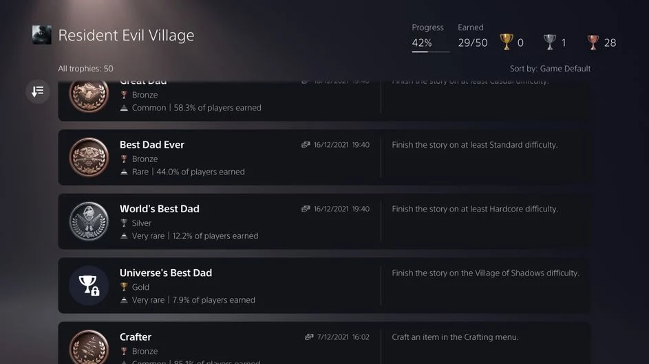 ในเกมบางเกมมีการปลดล็อกความสำเร็จหรือถ้วยรางวัล ที่จะมีให้เฉพาะกับความยากที่มีระดับสูงขึ้นกว่าปกติด้วย เช่น เก็บ Headshot ให้ได้ครบ 100 ครั้งในโหมดยาก หรือบางครั้งเงื่อนไขก็ง่าย ๆ แค่เล่นเกมให้จบในโหมดยากก็พอ เป็นต้น ซึ่งบางครั้ง ความสำเร็จบางอันก็ไม่ได้น่าสะสมอะไรขนาดนั้น แต่ถ้าคุณต้องการให้ความสำเร็จเต็ม 100% แล้วล่ะก็ ยังไงก็ต้องมาตามเก็บอยู่ดีแหละนะ