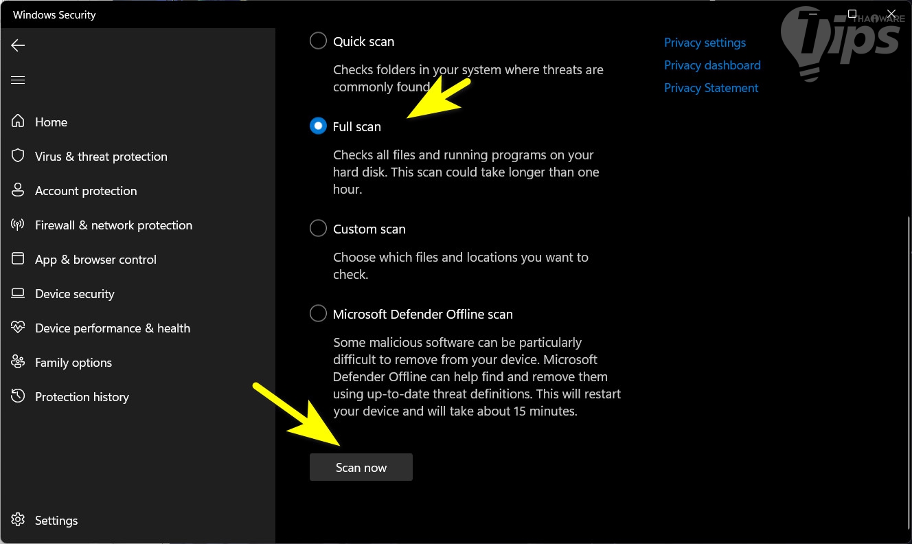 - คลิก "เมนู Full Scan" แล้วตามด้วย "ปุ่ม Scan Now"