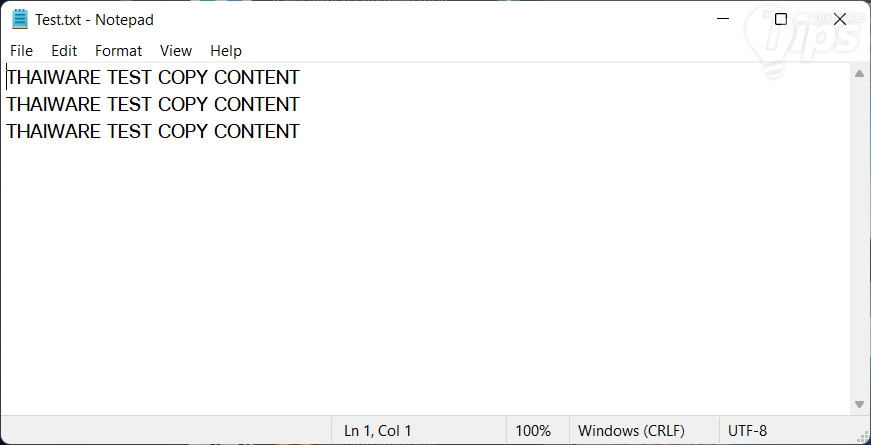 เรามาทดสอบการใช้งาน "คำสั่ง Copy Content" ดูกันสักหน่อย โดยเราจะลองสร้างไฟล์ .TXT ขึ้นมาลองกัน ภาพด้านล่างนี้ก็จะเป็นตัวอย่างไฟล์ที่เราได้สร้างขึ้นมา