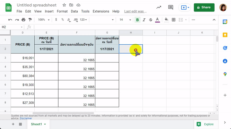 ในบทความนี้เรามีเคล็ดลับดี ๆ ในการคำนวณอัตราแลกเปลี่ยนด้วย โปรแกรมสเปรดชีต (Spreadsheet Software) ออนไลน์สุดฮิตอย่าง Google Sheet ที่มีฟังก์ชันในการอัปเดตอัตราแลกเปลี่ยนตามเวลาปัจจุบัน หรือจะเลือกค่าเงินของวันที่เจาะจงก็ได้อีกด้วยเช่นกัน โดยมันจะดึงข้อมูลจาก Google Finance มาใช้โดยอัตโนมัติ ลองมาดูวิธีกันดูเลย ...