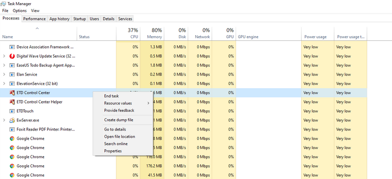 - เลื่อนหา "ชื่อ ETD Control Center" จากลิสต์รายชื่อโปรแกรมที่แสดงอยู่