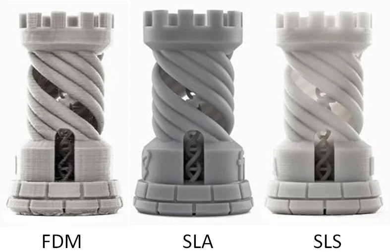 ภาพจาก https://www.zeal3dprinting.com.au/fdm-vs-sla-vs-sls-choose-right-3d-printing-technology/