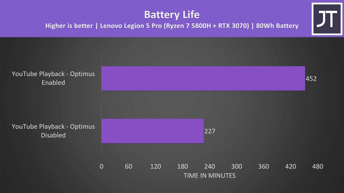 ในส่วนของสิ่งแลกเปลี่ยนที่ได้มาจากการให้ dGPU ในโน้ตบุ๊กต่อกับจอแสดงผลโดยตรง คือเมื่อ iGPU ถูกตัดการเชื่อมต่อ โน๊ตบุ๊กก็จะทำงานโดยอาศัย dGPU เพียงอย่างเดียว ไม่ต่างจากคอมพิวเตอร์ Desktop ทำให้อัตราการใช้พลังงานจากแบตเตอรี่สูงขึ้นกว่าเดิมมาก การปรับใช้งานจึงขึ้นอยู่พฤติกรรมเป็นหลัก เช่น เสียบอะแดปเตอร์ใช้งานอยู่ที่บ้านก็ปรับให้ใช้ dGPU เพียงอย่างเดียวโดยตรงไปเลย เพราะไม่ต้องกังวลเรื่องแบตเตอรี่ แต่ถ้าพกไปทำงานนอกสถานที่ก็เลือกใช้งานผ่าน iGPU เหมือนเดิม