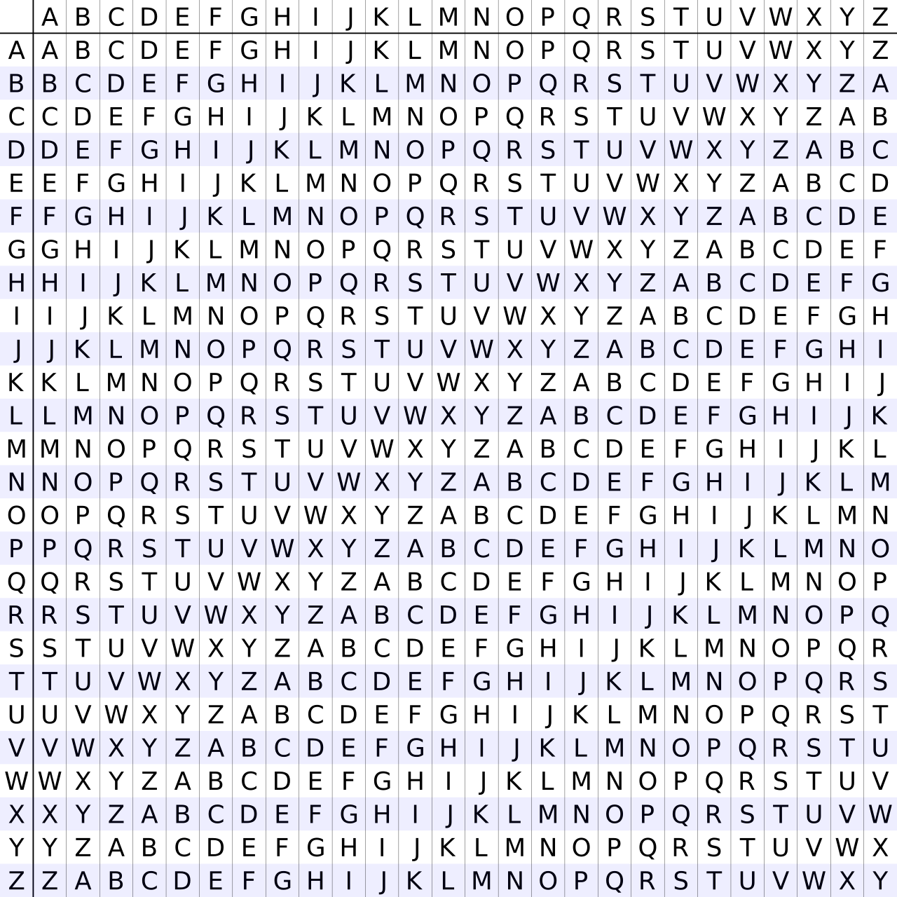 ตัวอย่างตาราง Polyalphabetic Cipher ที่ใช้ในการถอดรหัส