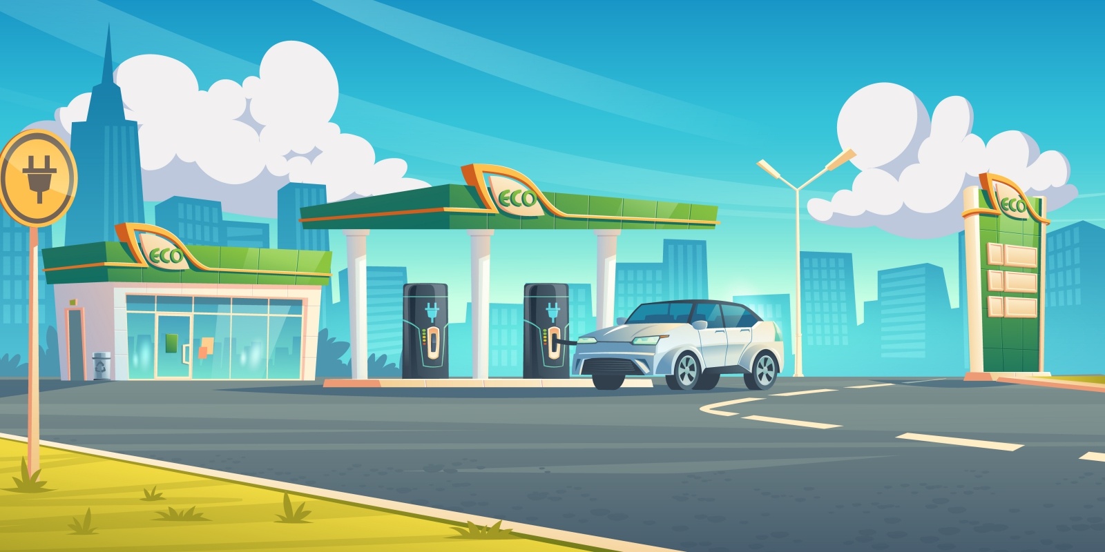 ภาพจาก : https://www.freepik.com/free-vector/electric-car-recharge-station-ev-refueling-service_9668881.htm