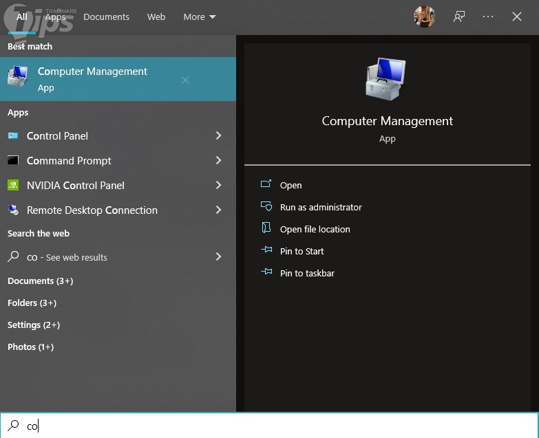 ขั้นแรก ตรวจสอบหมายเลขดิสก์ของเรา โดยทำการค้นหาที่ "เมนู Start" พิมพ์คำว่า "Computer Management" แล้วเลือกเมนูตามรูป