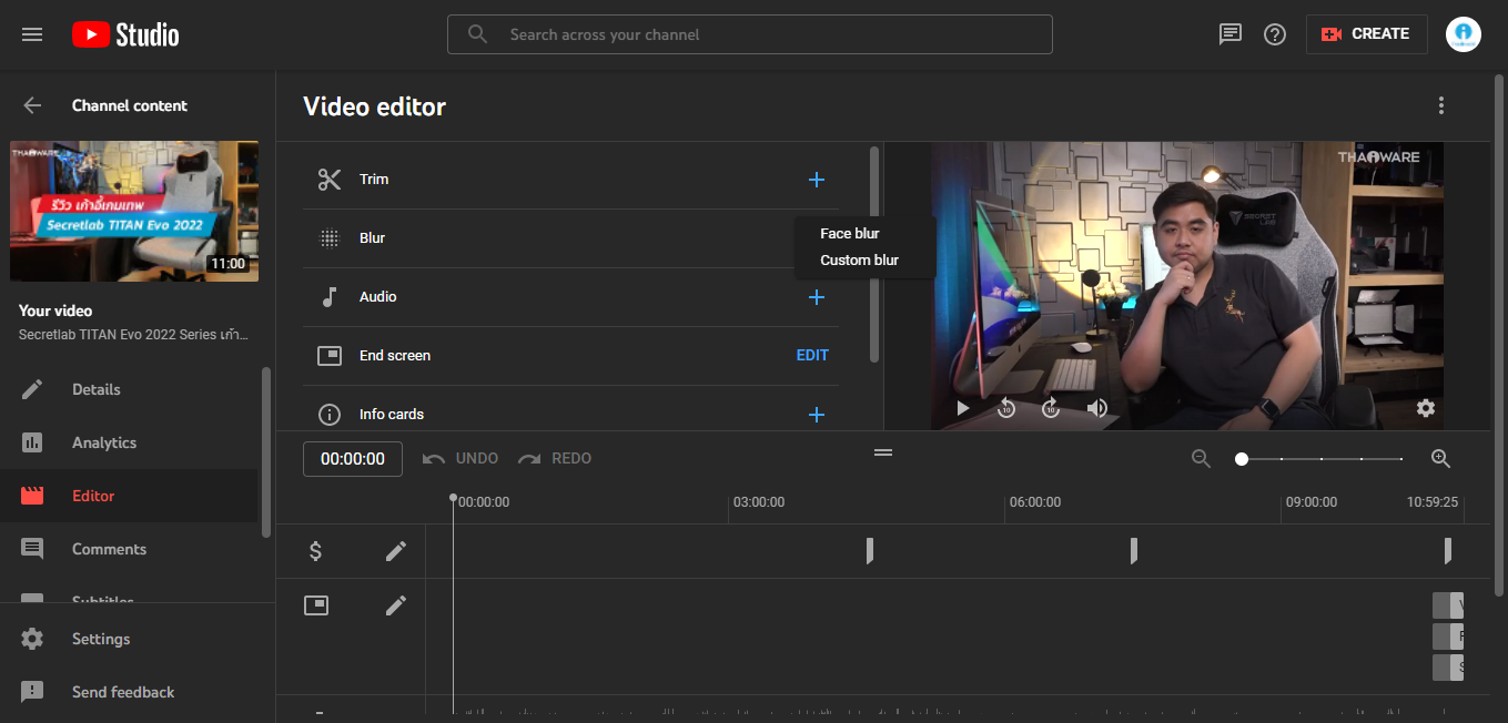 สำหรับใครที่ลืมเซนเซอร์จุดสำคัญภายในคลิปก็สามารถกดใช้งานเครื่องมือการเบลอในเมนู Editor ได้ทั้งการเบลอหน้า (Face Blur) และกำหนดจุดที่ต้องการเบลอ (Custom Blur)