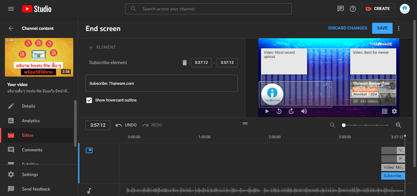 การเพิ่มวิดีโอแนะนำท้ายคลิปนั้นจะสามารถเลือกได้ทั้งวิดีโอที่อัปโหลดล่าสุด (Most Recent Upload), วิดีโอในช่องที่คาดว่าผู้ใช้จะสนใจ (Best for Viewer) และการเพิ่มวิดีโอที่กำหนดเอง (Custom)