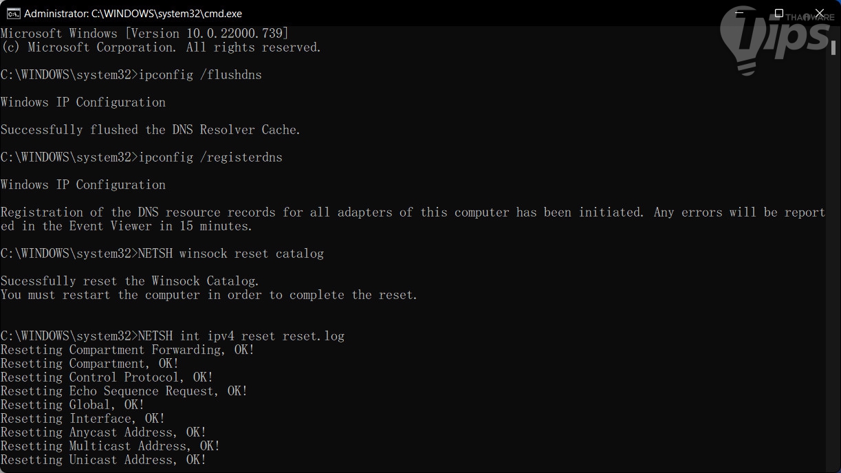 การทำแบบนี้จะเป็นการรีเซ็ตค่า Dynamic Host Configuration Protocol (DHCP) ซึ่งมีหน้าที่ในการแจกจ่าย IP Address ให้กับเครือข่ายของเรา