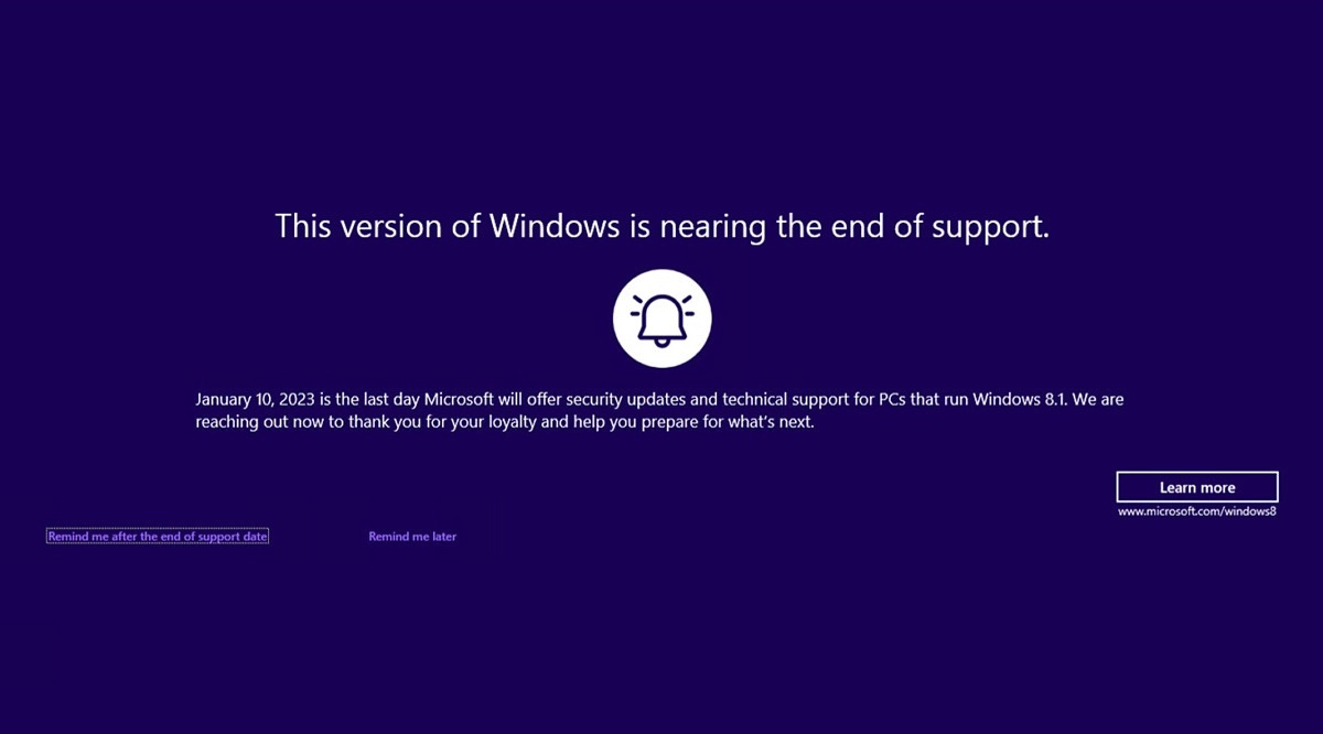 เพื่อให้ปัญหานี้สิ้นสุดลง และกระตุ้นให้คนอัปเกรดมาใช้ระบบปฏิบัติการ Windows เวอร์ชันใหม่ ทาง Microsoft ก็เลยตัดสินใจยุติการสนับสนุนระบบปฏิบัติการ Windows 8.1