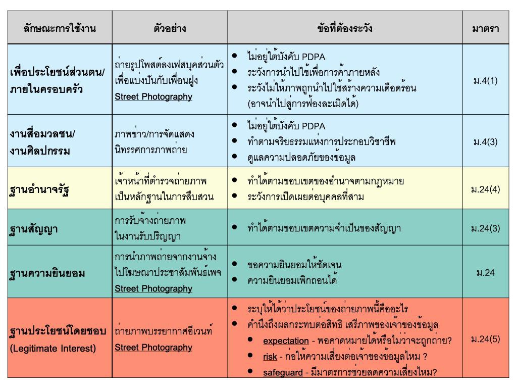 แต่จริง ๆ การถ่ายภาพนั้นยังมีการแบ่งตามเหตุผลและลักษณะการใช้งานอีกหลายด้านที่ควรรู้ ดังนั้นเราไปทำความรู้จักกับข้อควรระวังของการถ่ายภาพในกฎหมาย PDPA ให้มากขึ้นกัน