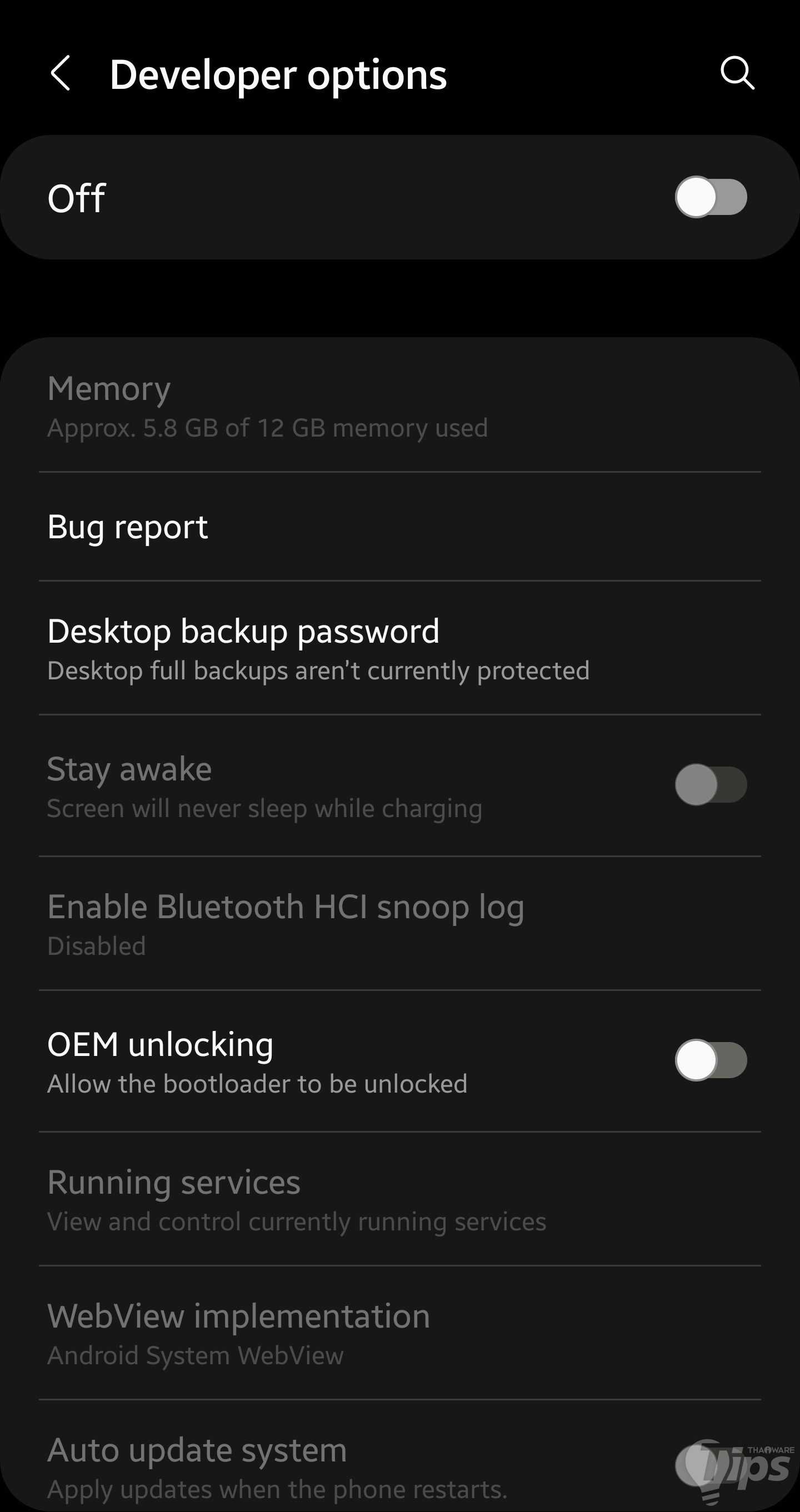 "คำสั่ง Off" ใน "เมนู Developer options"