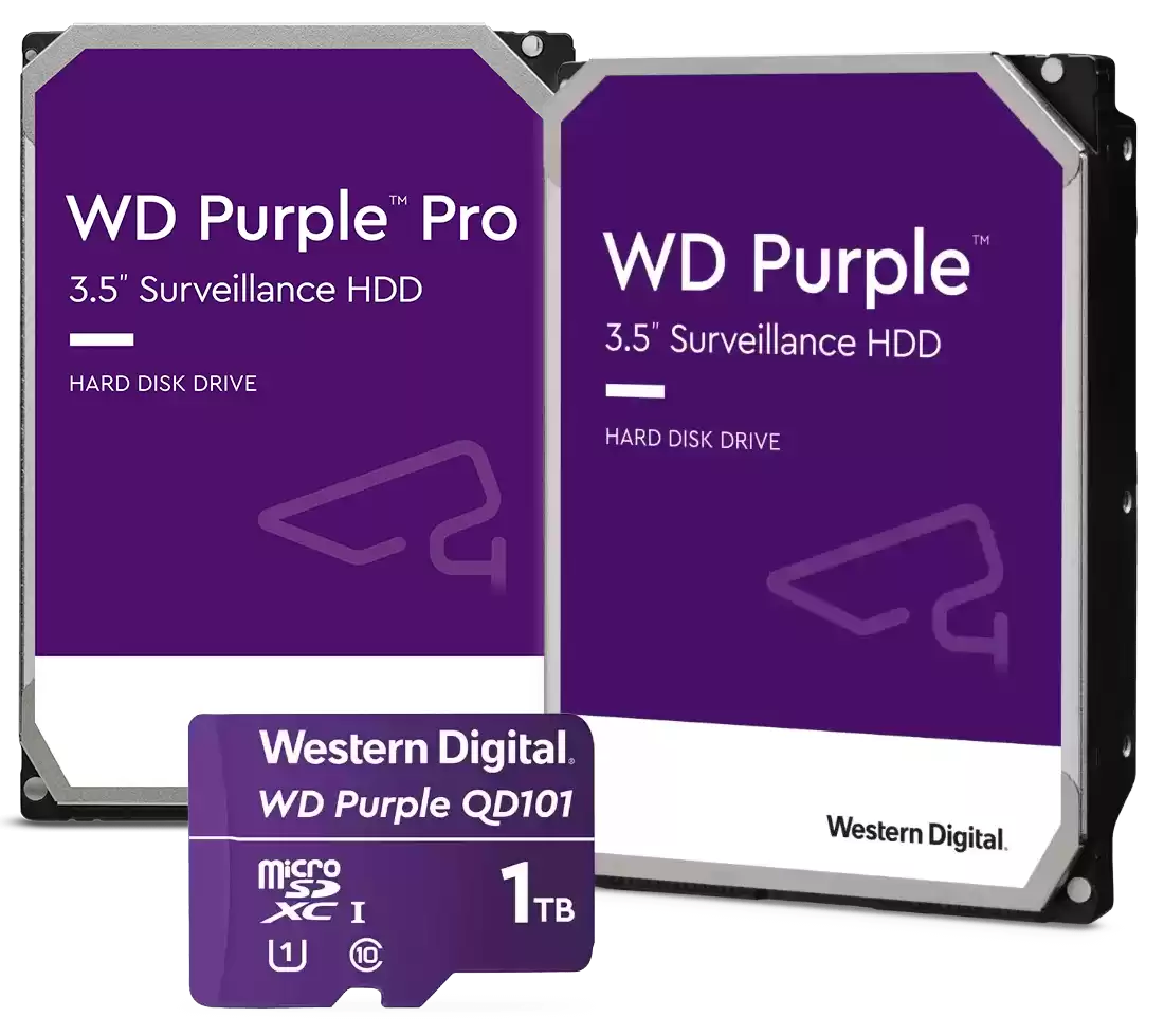 WD Purple หรือ WD สีม่วง คือซีรีส์ของอุปกรณ์เก็บข้อมูล ที่ถูกออกแบบมาสำหรับการใช้งานกับระบบกล้องวงจรปิด (Surveillance System หรือ CCTV) เป็นพิเศษ เพราะระบบดังกล่าว ต้องใช้งานอุปกรณ์ตลอด 24 ชั่วโมง และต้องมีความจุสูงเพื่อให้สามารถรองรับการบันทึกไฟล์วิดีโอขนาดใหญ่ได้ โดยมันมาพร้อมเทคโนโลยี AllFrame™ ที่ช่วยลดการขาดช่วงของเฟรม และบันทึกวิดีโอที่ความละเอียดระดับ HD ได้เป็นอย่างดี