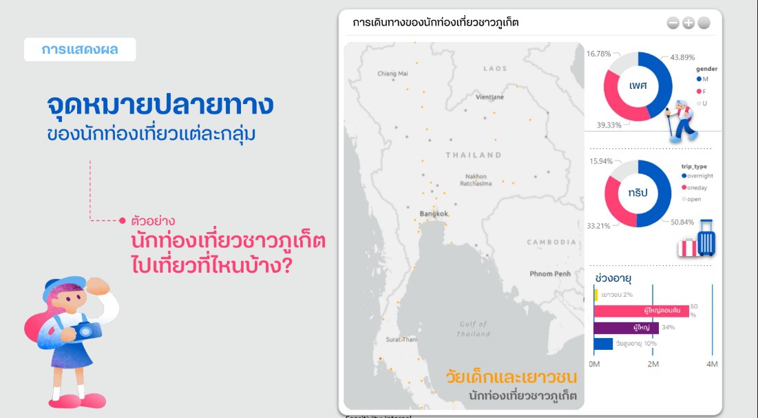 ตัวอย่างข้อมูลนักท่องเที่ยวชาวภูเก็ตที่เดินทางไปไหนบ้างในช่วงเวลาหนึ่ง ข้อมูลบ่งบอกถึงเพศ และ ช่วงอายุ