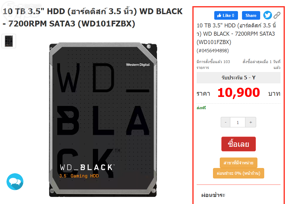 จากรูปด้านบนจะเห็นได้ว่า ตัวเลือก HDD จะมีความจุเริ่มต้นตั้งแต่ 500 GB. ไปจนถึง 10 TB. เลยทีเดียว แต่ตัวเลือกแบบ SSD จะมีความจุสูงสุดให้เลือกซื้ออยู่ที่ 2 TB. เท่านั้น โดย SSD รุ่น WD BLACK SN850 ความจุ 2 TB. ตามรุ่นด้านบน ราคาอยู่ที่ 15,540 บาท แต่ HDD WD Black ที่ความจุ 10 TB. มีราคาอยู่ที่ 10,900 บาท เรียกว่าได้ความจุมากกว่า แถมถูกกว่าหลายพันบาทเลยล่ะ