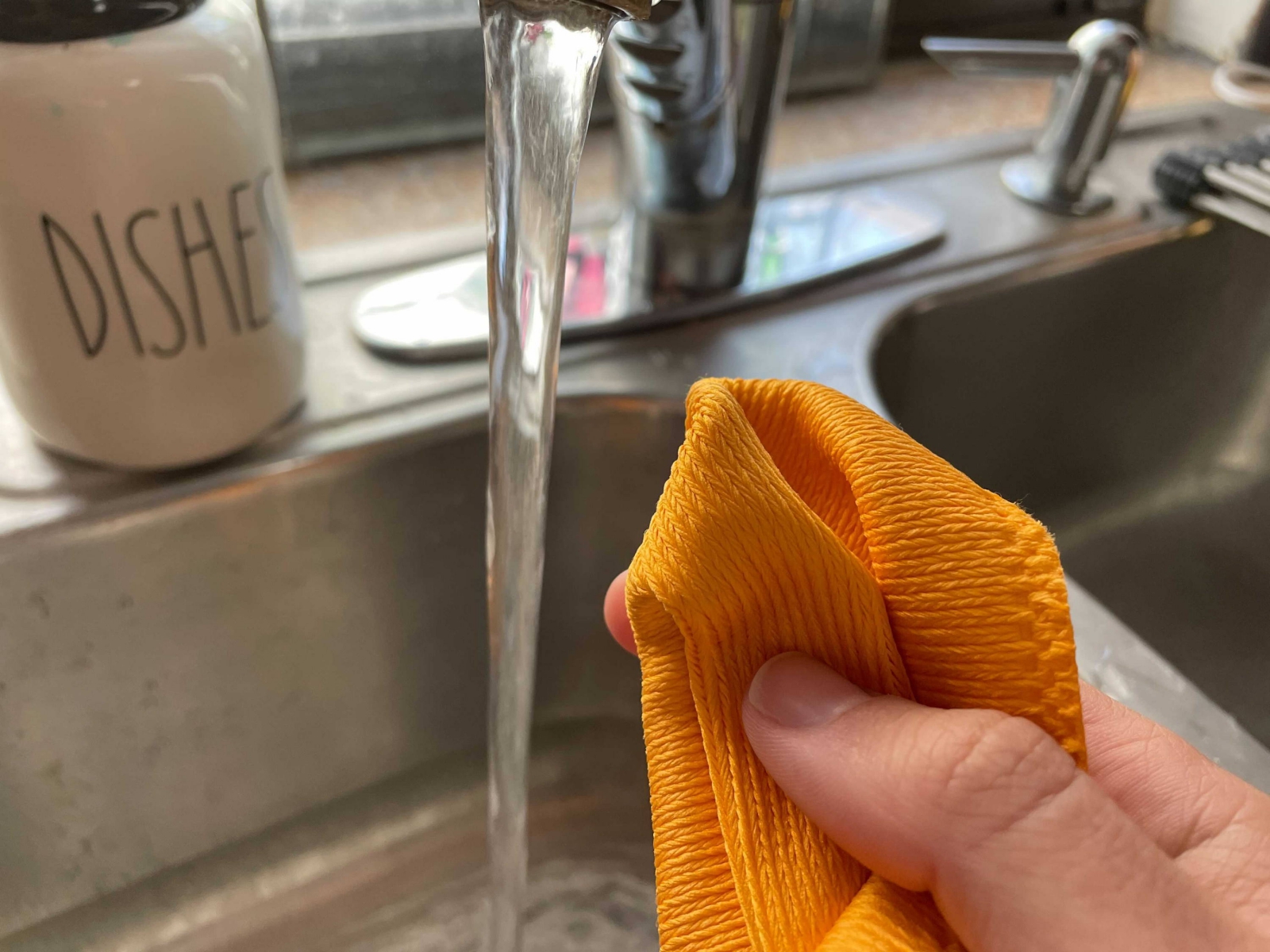 - ล้างฟองน้ำให้สะอาดด้วยน้ำเปล่า ทำให้แน่ใจว่าไม่มีน้ำสบู่หลงเหลือในฟองน้ำแล้ว