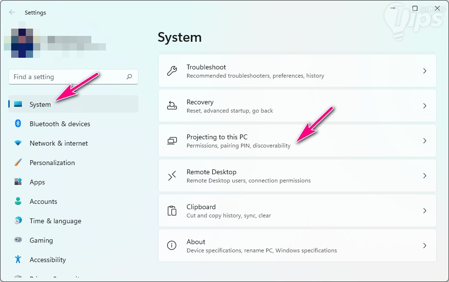 - ในพาเนลด้านขวา คลิกที่ "เมนู Projecting to this PC"