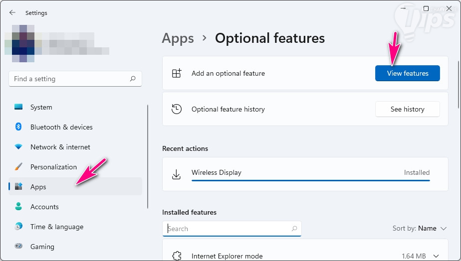 - ในพาเนลด้านขวา คลิกที่ "ปุ่ม View Features"