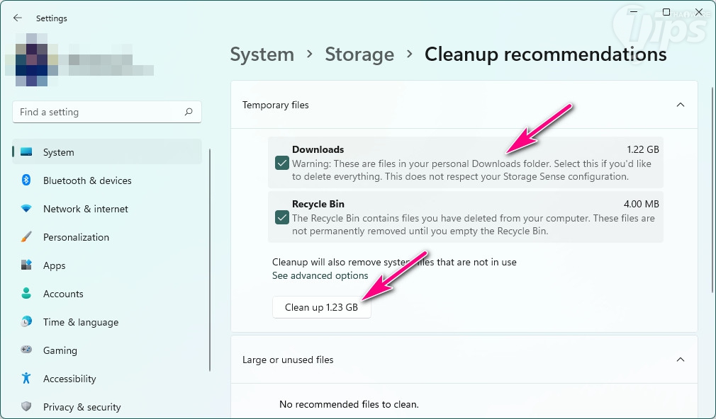 โดย Windows 11 เวอร์ชัน 22H2 จัดว่าเป็นเมเจอร์อัปเดตครั้งใหญ่ ทำให้ต้องการพื้นที่ว่างในการอัปเดตค่อนข้างเยอะ โดยในขณะที่อัปเดตไดร์ฟควรจะมีพื้นที่ว่างเหลืออย่างน้อย 64 GB หากไดร์ฟของเรามีพื้นที่เหลือไม่พอ ให้ย้ายไฟล์ไปเก็บไว้ที่อื่น และใช้เครื่องมือทำความสะอาดไดร์ฟเพื่อล้างไฟล์ขยะออกจากระบบ โดยมีขั้นตอนดังนี้