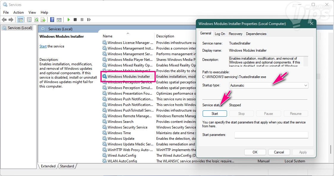 ทำซ้ำขั้นตอนที่ 3-6 อีกครั้ง กับเมนู Background Intelligent Transfer Service, Cryptographic Service และ Windows Update services