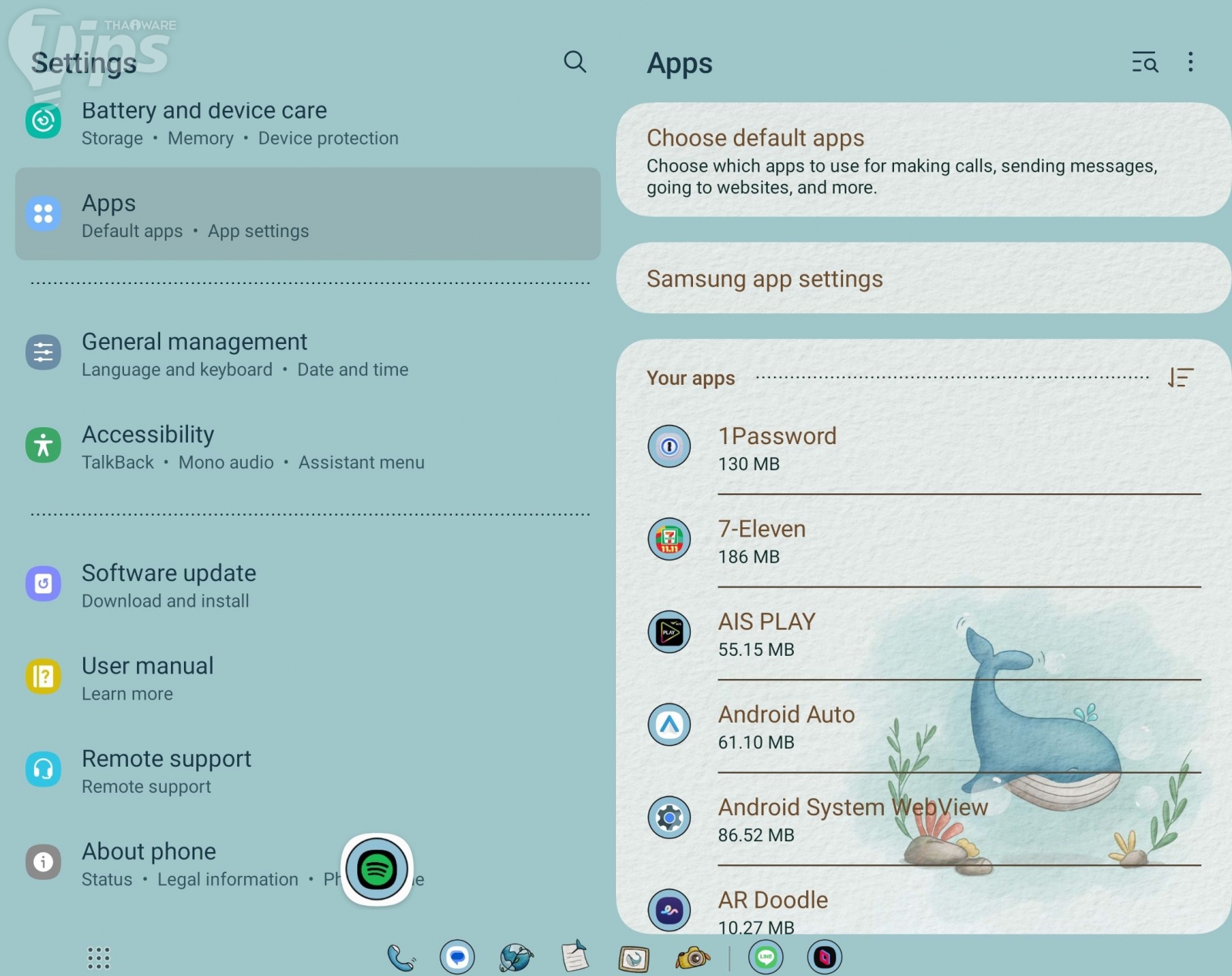 ให้แตะที่ "ไอคอน Settings" แล้วเลื่อนลงมาจนกว่าจะเริ่มเห็นรายชื่อแอปในเครื่อง จากนั้นให้ไล่เช็คดูว่ามีแอปไหนที่คุณรู้สึกไม่คุ้นเคย หรือไม่เคยใช้งานมาก่อนหรือไม่ โดยให้เลื่อนลงมาจนถึงด้านล่างสุด เผื่อในกรณีที่มีแอปซ่อนอยู่ในโฟลเดอร์อื่นด้วย