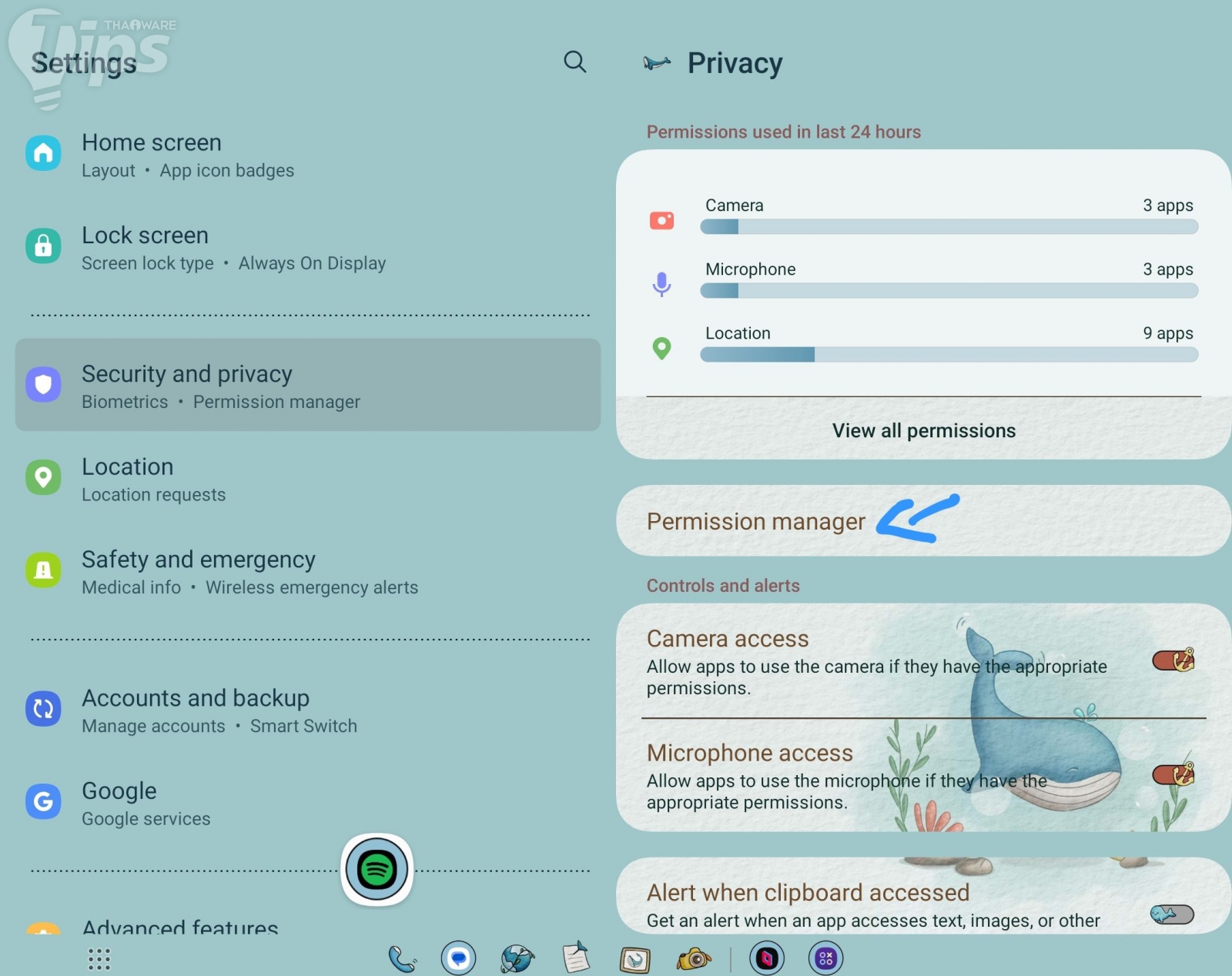 ให้แตะที่ "ไอคอน Settings" แล้วไปที่ "เมนู Privacy → Permission Manager"